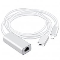 Doriți livrarea produselor în România? Uitați-vă la Cablu / adaptor pentru încărcare și conectare simultană a unui cablu de ethernet pentru iPhone / iPad - 1m - alb pe AppleKing.ro.